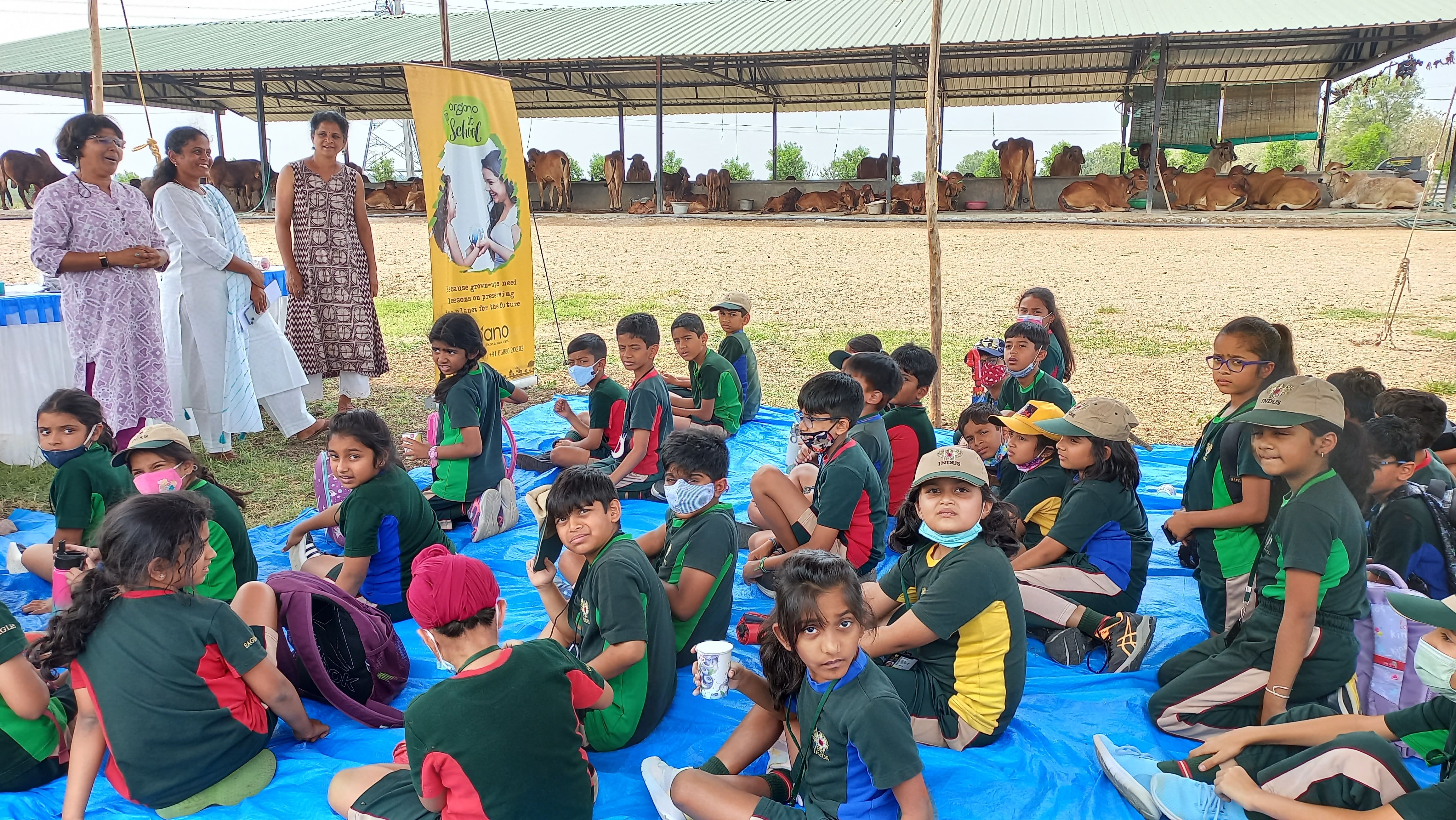 OES is incredibly appreciative of the Indus International School teachers who endured the hardship of bringing the kids to our goshala so they may study things in a more real-world setting. The influence of learning via field trips is higher on young minds.